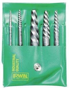 For Removing Broken Screws And Bolts. Left Hand Spiral, Tapered Flute. Correct Drill Size Stamped On Each Screw Extractor. Eliminates Redrilling And Retapping For A Larger Screw. One Each: EX1, EX2, EX3, EX4, EX5, In Plastic Pouch.