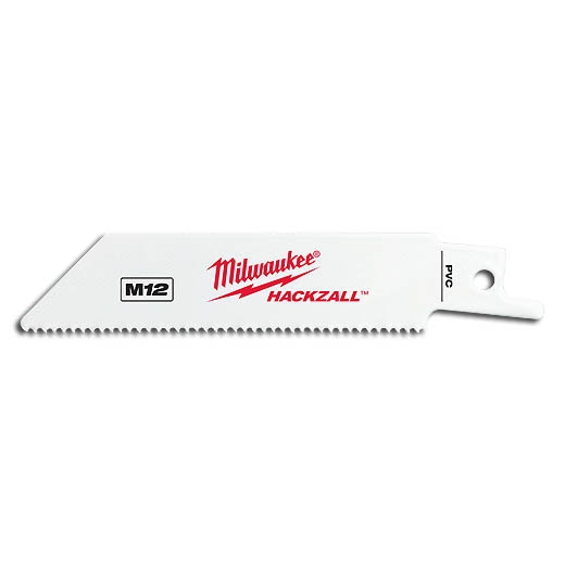 The Milwaukee Hackzall 4 in. 12 TPI PVC Reciprocating Saw Blades (5-Pack) cuts through PVC Sch. 40 pipe up to 2 in. in diameter. The saw features a short 4 in. blade that helps you cut in tight locations. Designed to maximize the cutting performance of the new M12 HACKZALL Reciprocating Saw, these blades feature a thin kerf design that reduces the amount of drag and resistance while cutting, resulting in more cuts per battery charge. Specialized blades are available for a variety of HVAC, electrical, plumbing and maintenance/repair applications.